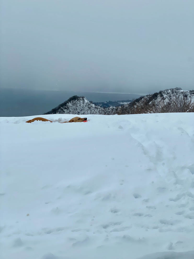 Only a dog could have that much fun in the drifts.