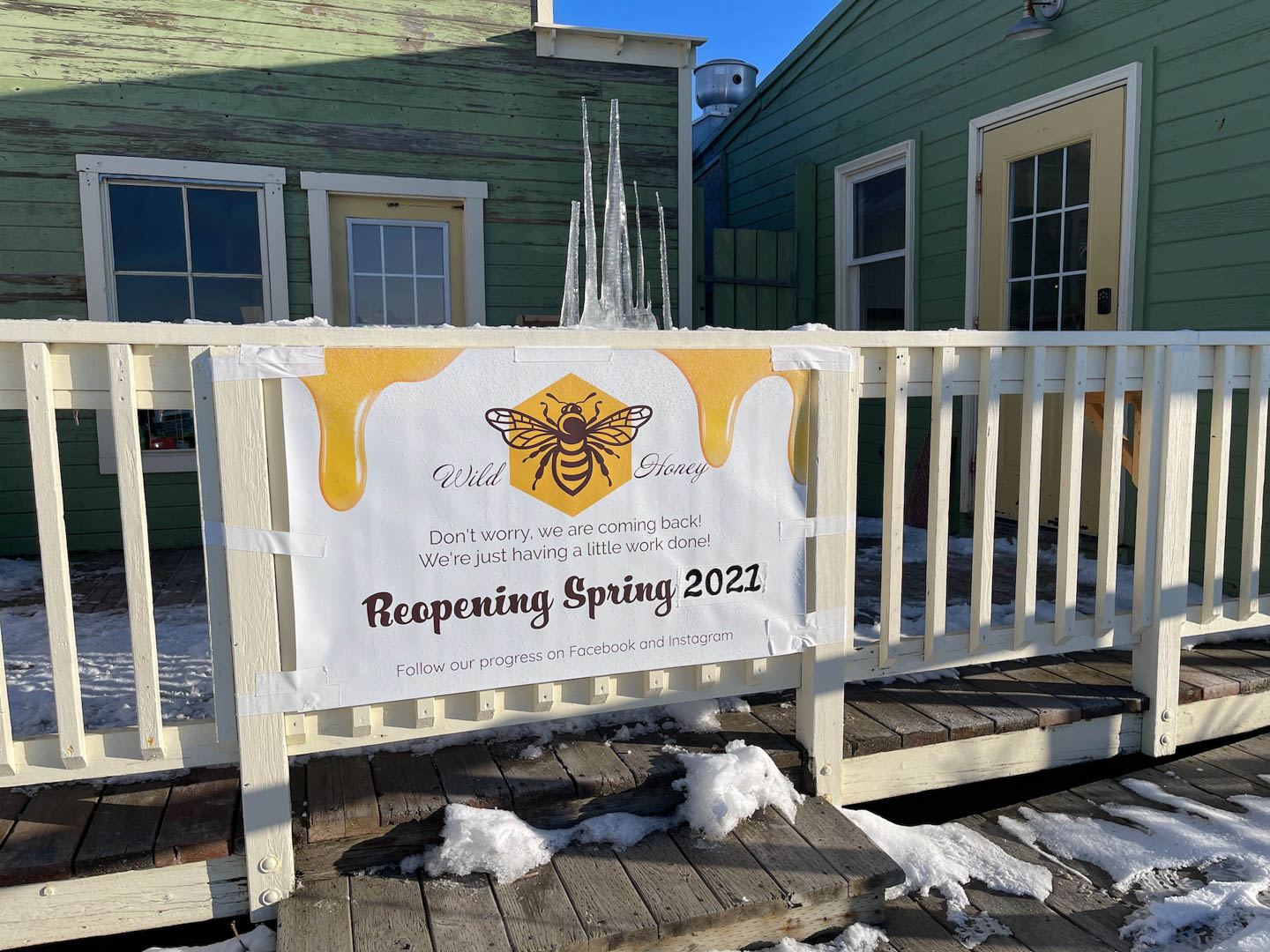 Spring still seems a ways off up here but they are busy getting the Wild Honey ready for a new normal. Looks like take out only with adjustments as they adapt to life with Covid.