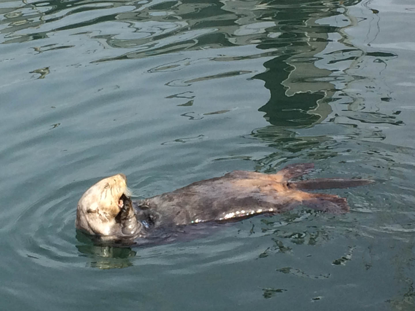 We put the boat in the water and are working out the winter kinks before the 3 hour cruises can begin. A sea otter was eating mussels in the open slip next door.