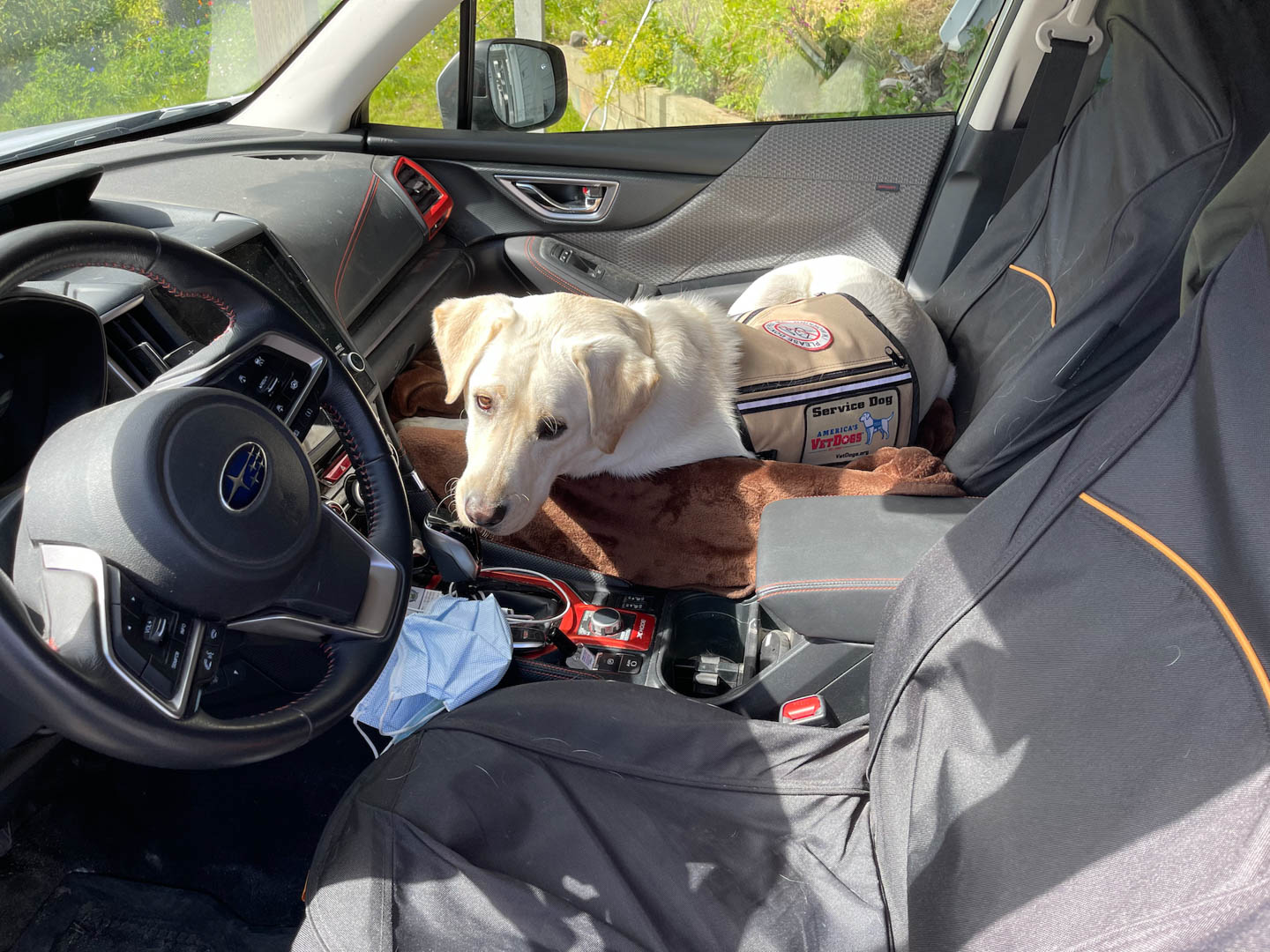 Travel day was the 31st. The first real test of our training. Earl and I had two flights to get us to Anchorage. He was very interested in all the new smells in Alaska.