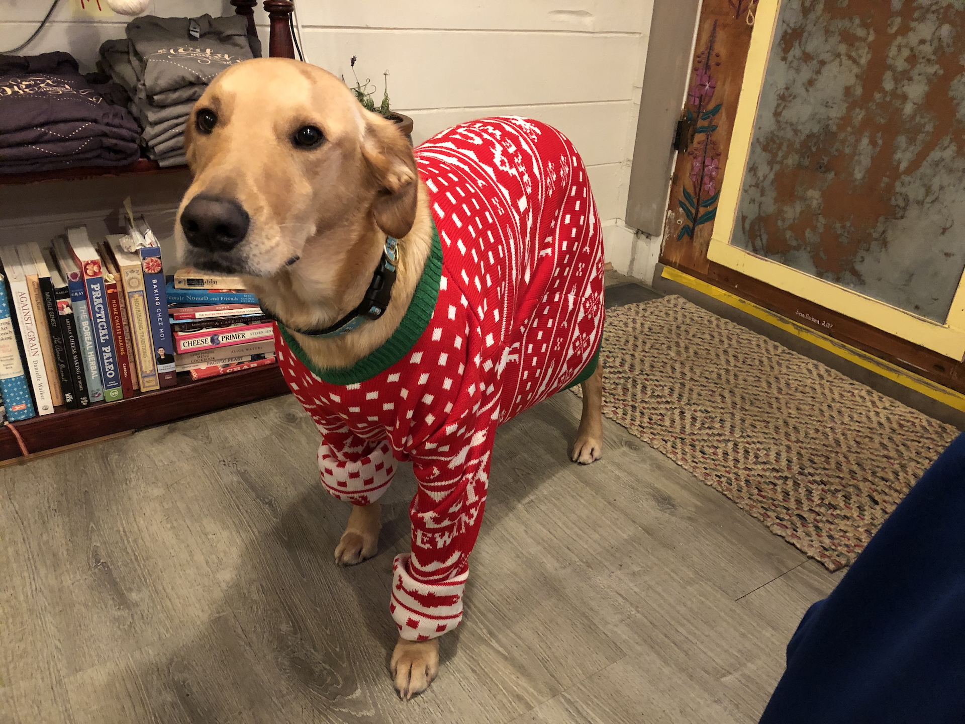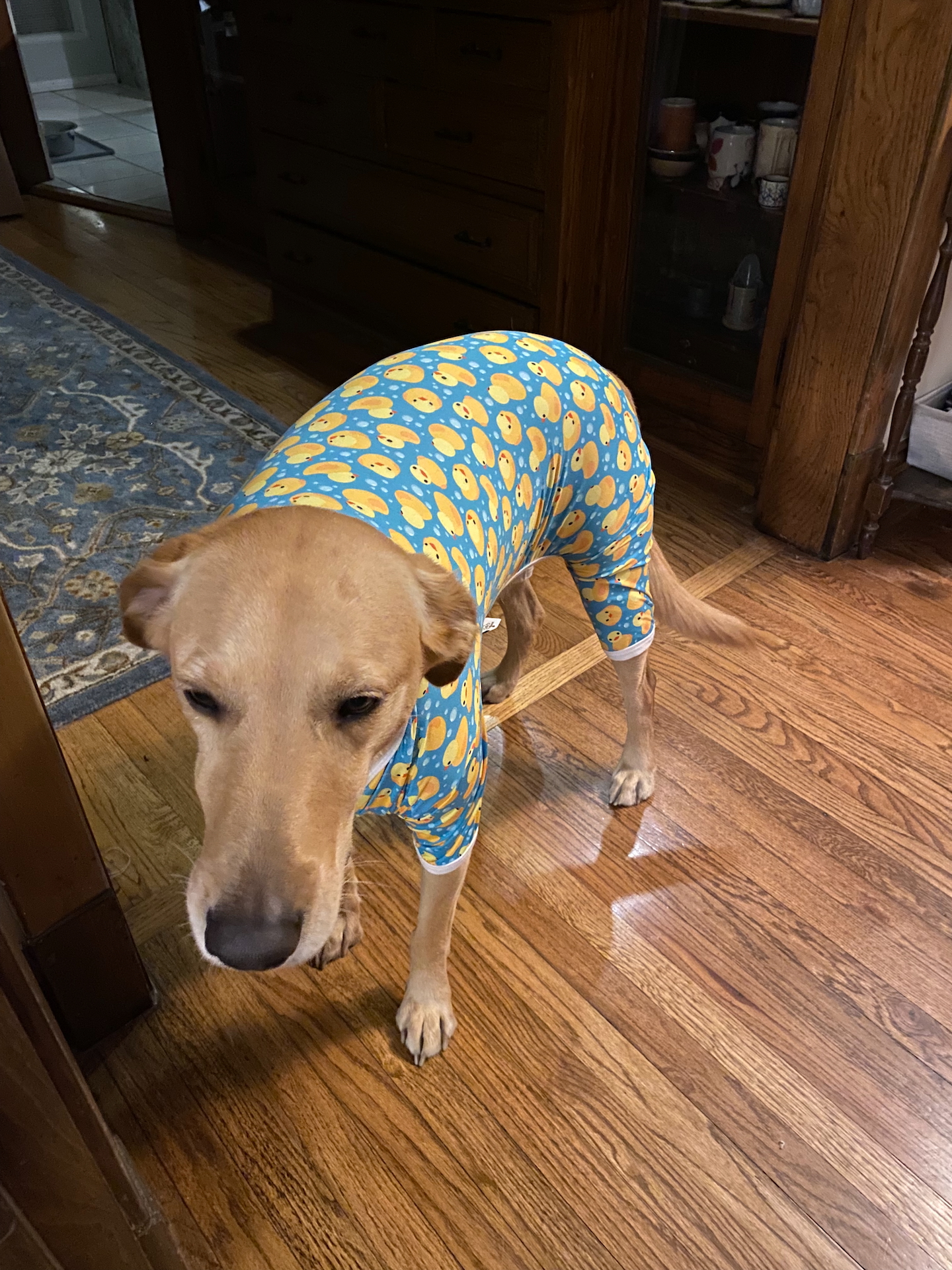 Melody tried dressing him up for a “Pajama Day” at the cafe. I’m pretty sure he never forgave her for the most embarrassing time in his life.