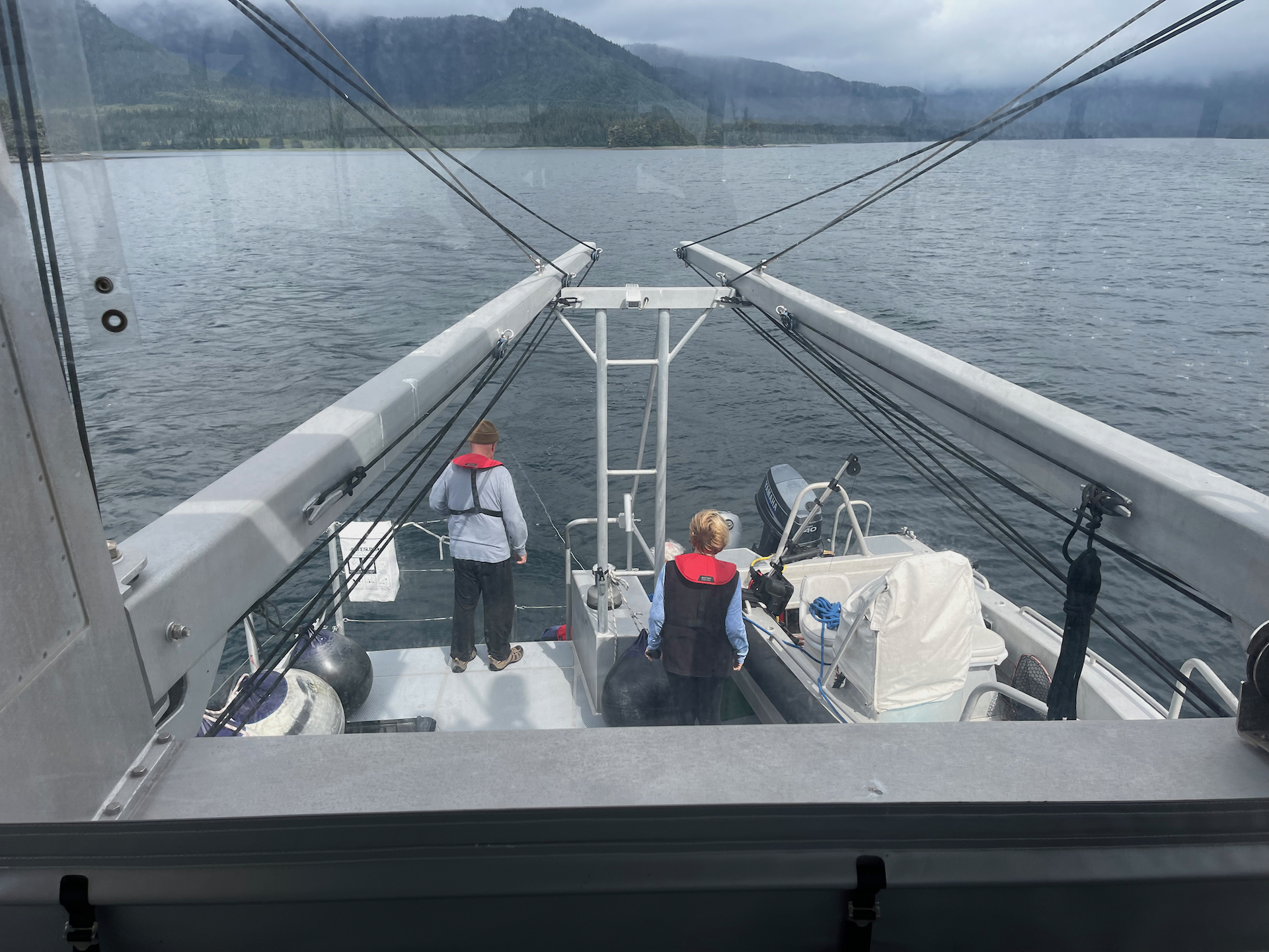 Stan took the dingy and our intrepid hunter/gatherers to check on the pots and maybe snag some salmon the next morning.