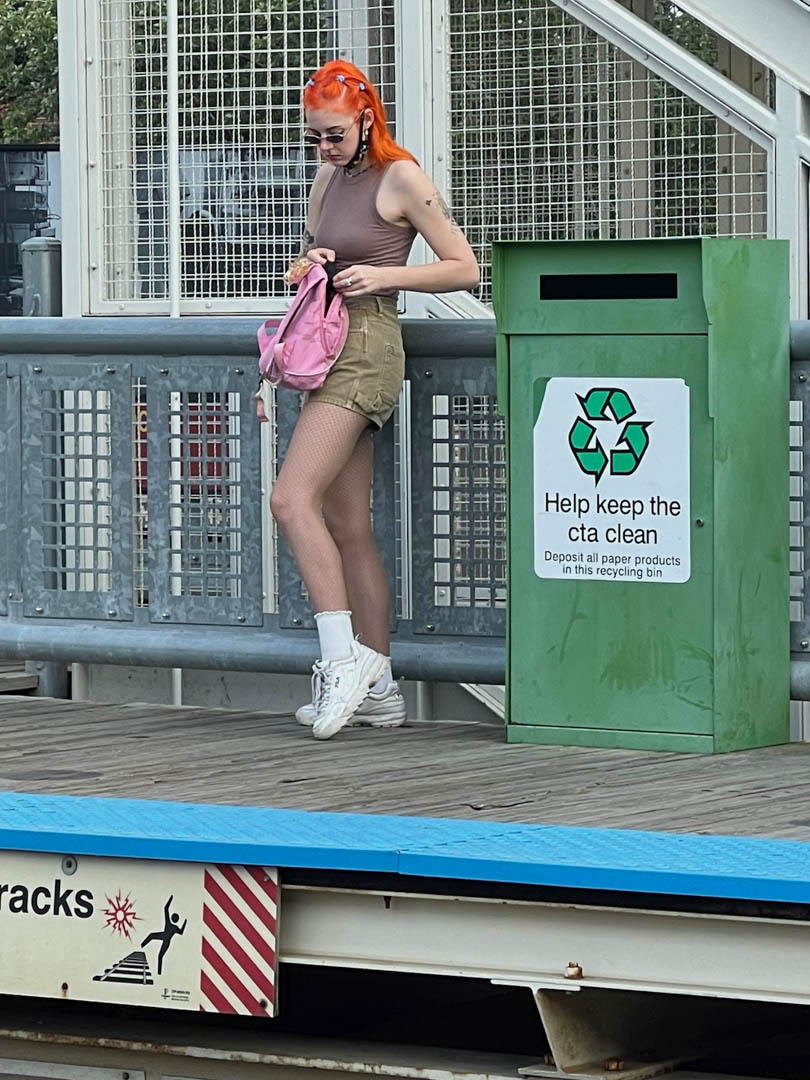 Seriously, it was great to see Melody, Scott and the boys (Eli and Rudder). Lots of good times and dog fixes. We even went to a Cub’s game at Wrigley Field. On the way we saw this young lady sporting Mavorett’s favorite hair color “radio active carrot”. She wears it well.