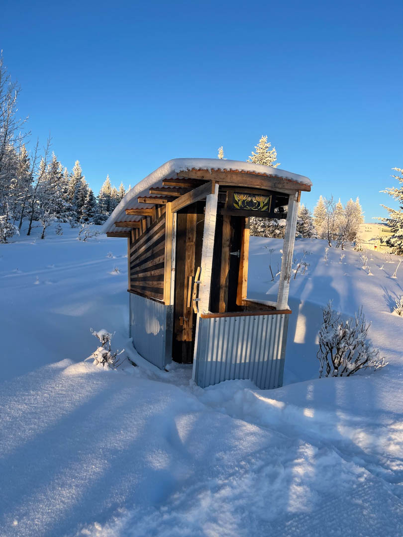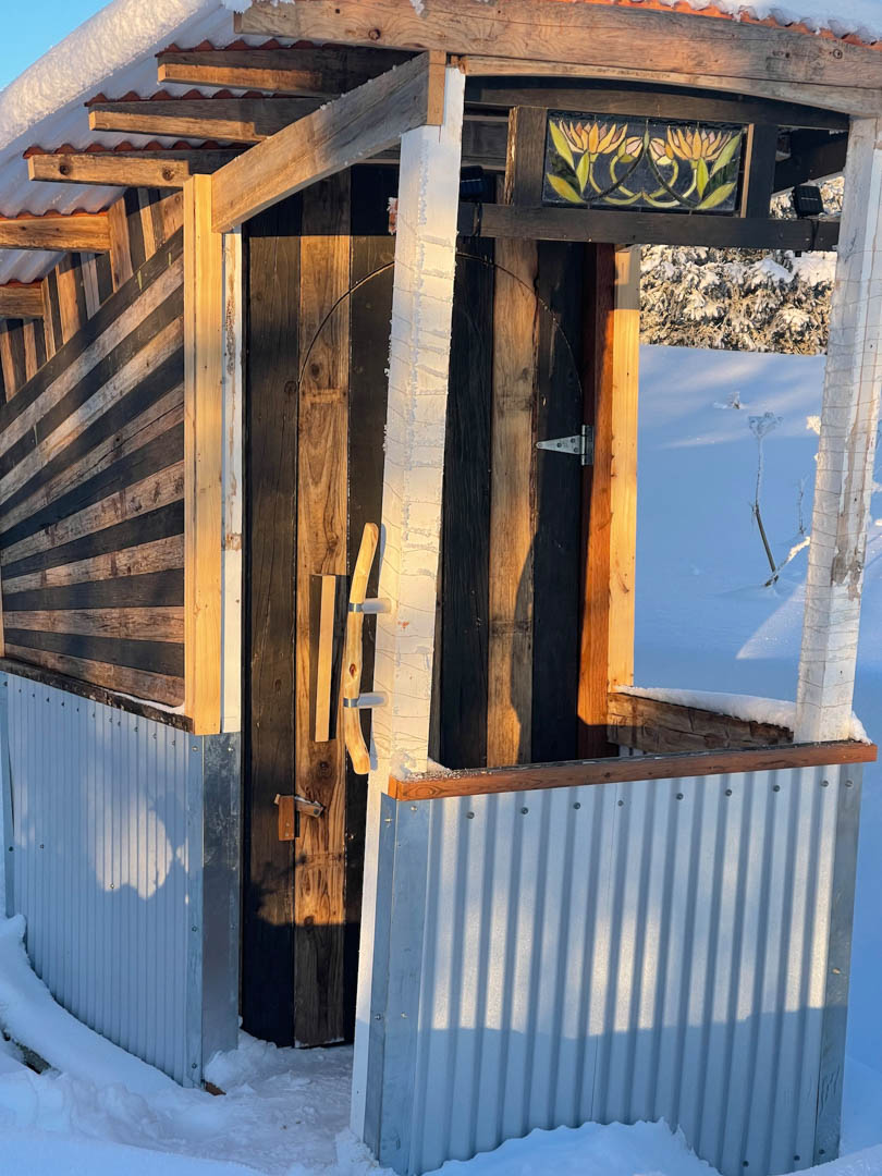 We have a lot of artistic talent in Homer. Among them is a carpenter namer Taro. He brings traditional Japanese technique into all his projects. He has a remarkable relationship with wood. Here is an outhouse that Bill and Shellie had him make for them.