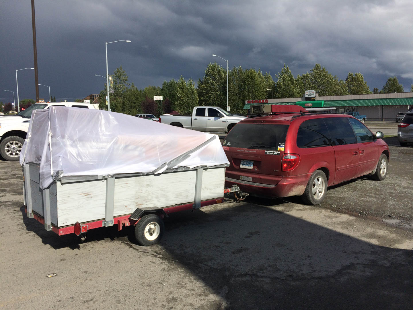 Found a entertainment center on Craigslist in Soldotna, so I borrowed Tony’s trailer and hauled it down to Homer.