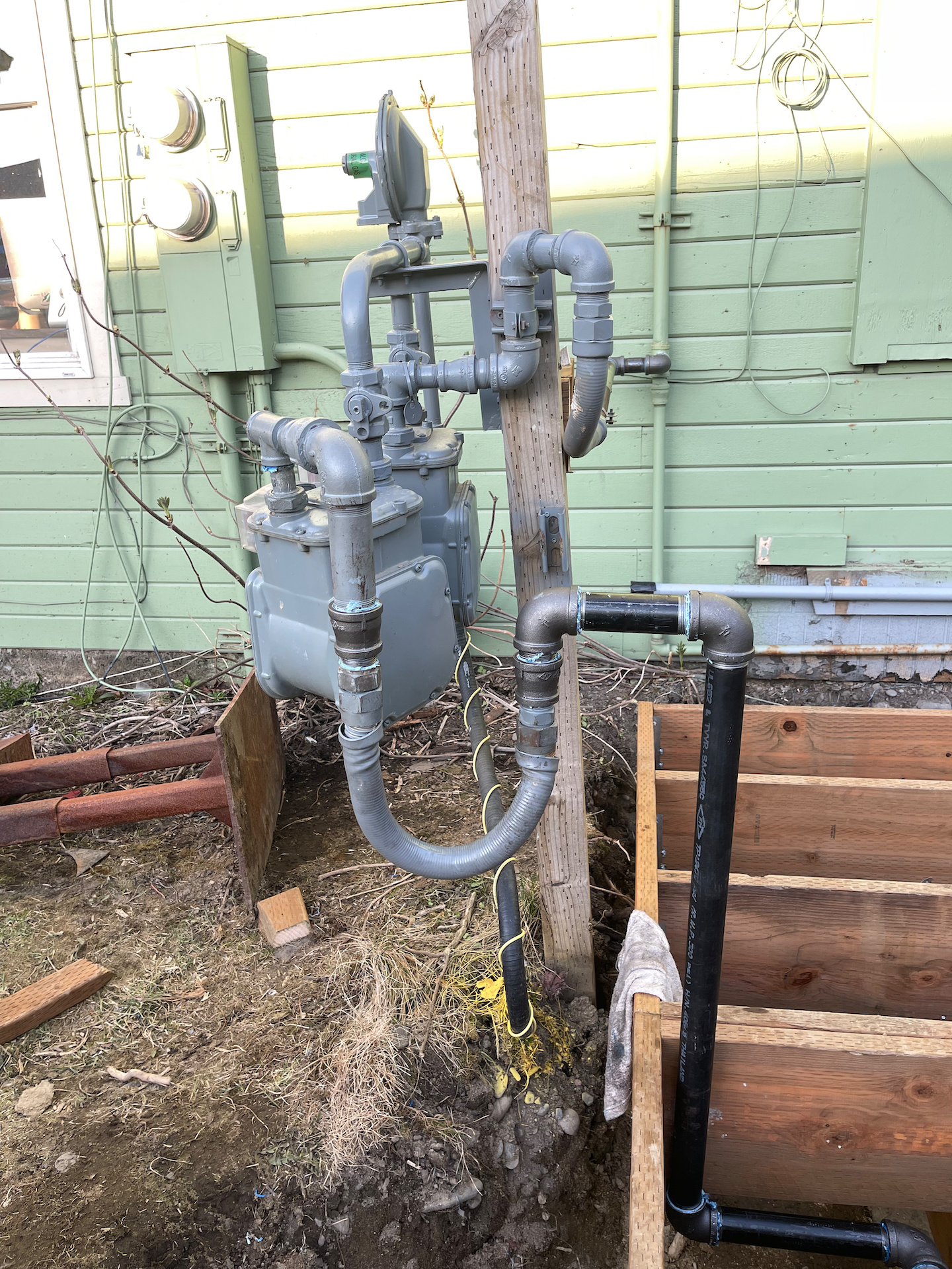 The meters had to move a few inches to clear the new build.