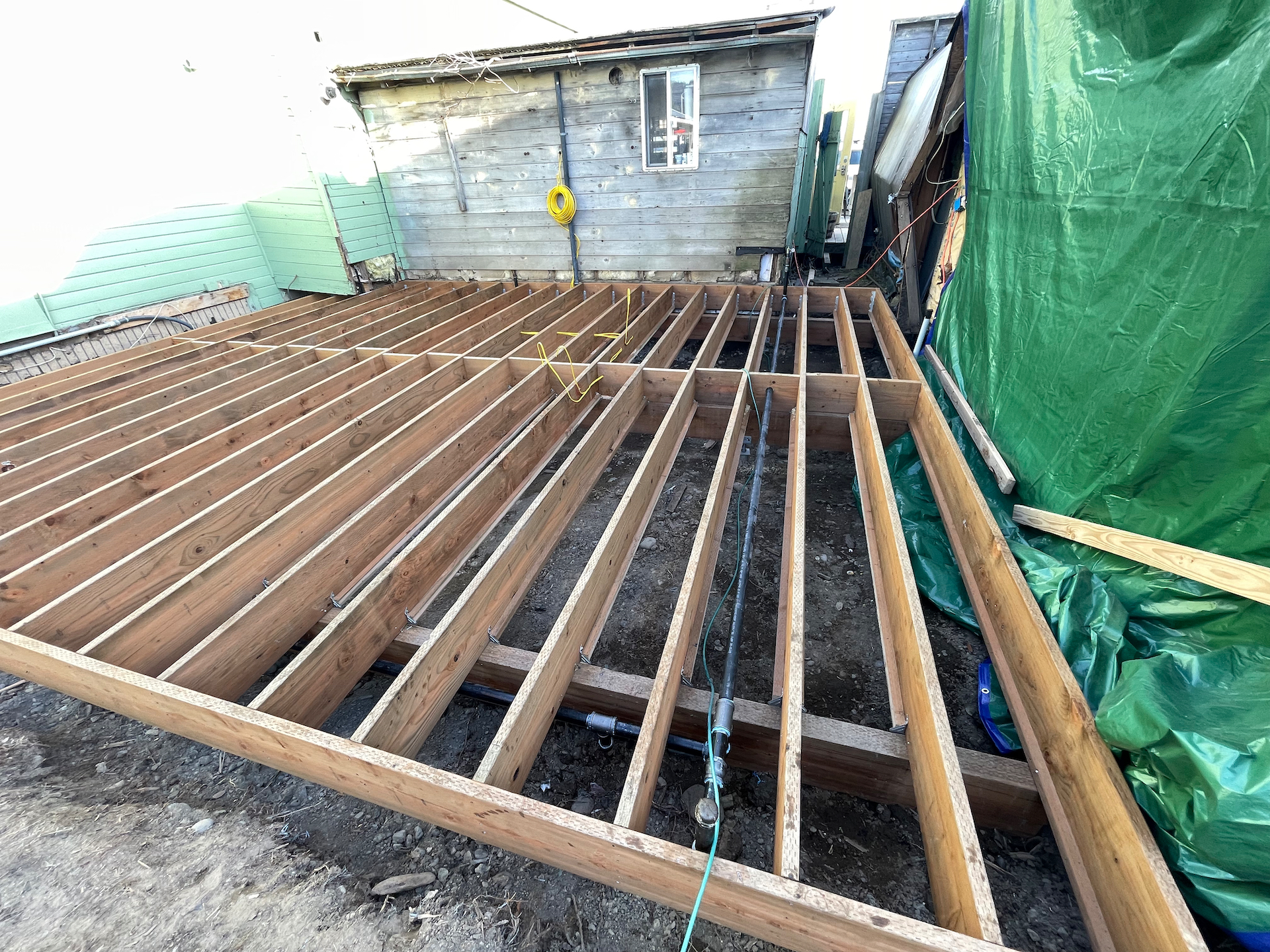 Week one, framing. The existing gas supply line was in the way so we had to get the floor joists set and then bring in the plumbers to redo the gas lines; the goal being that the cafe can reopen for mothers day.