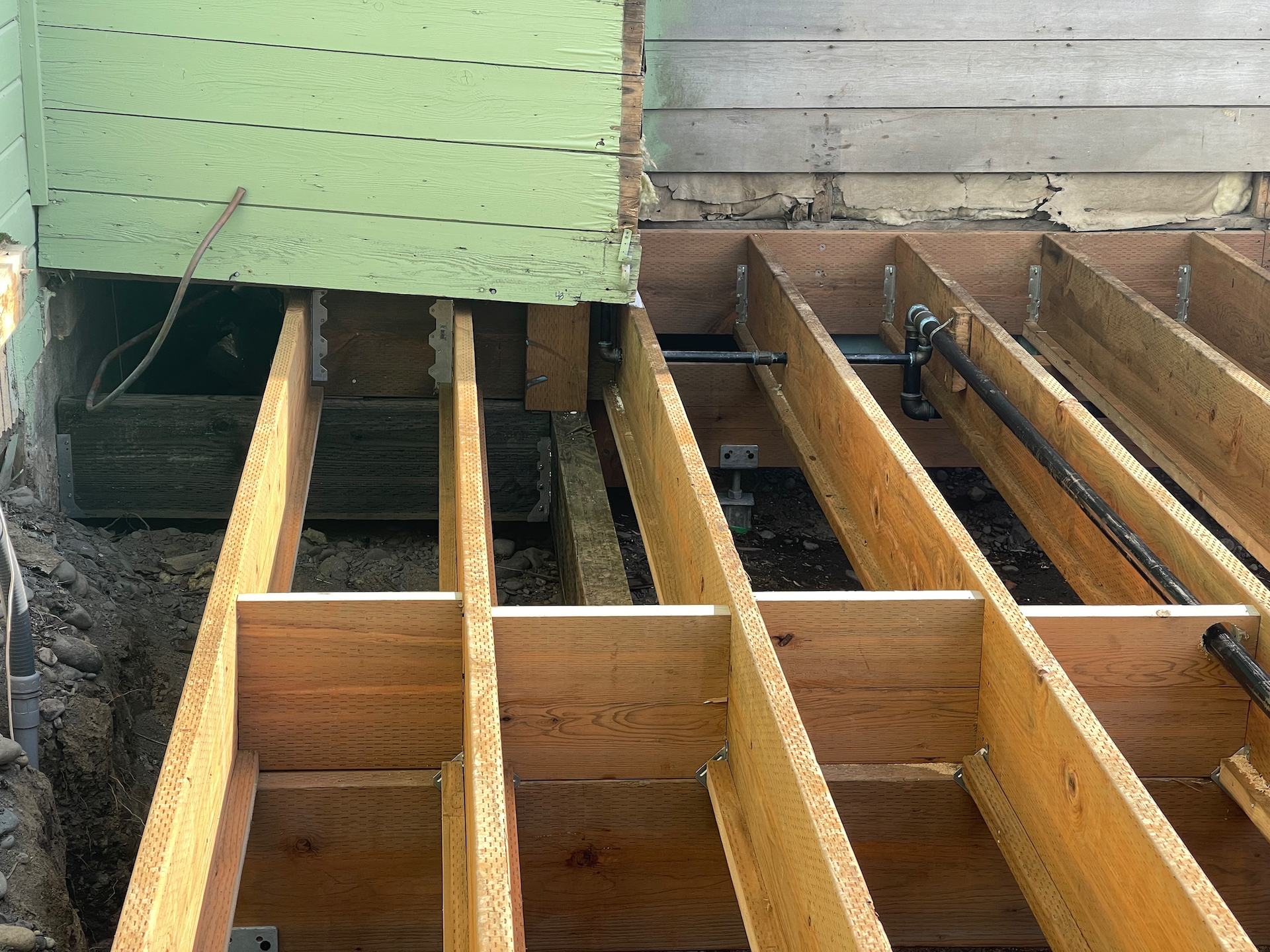 Here we have the floor joists set and new gas lines under going a pressure test.