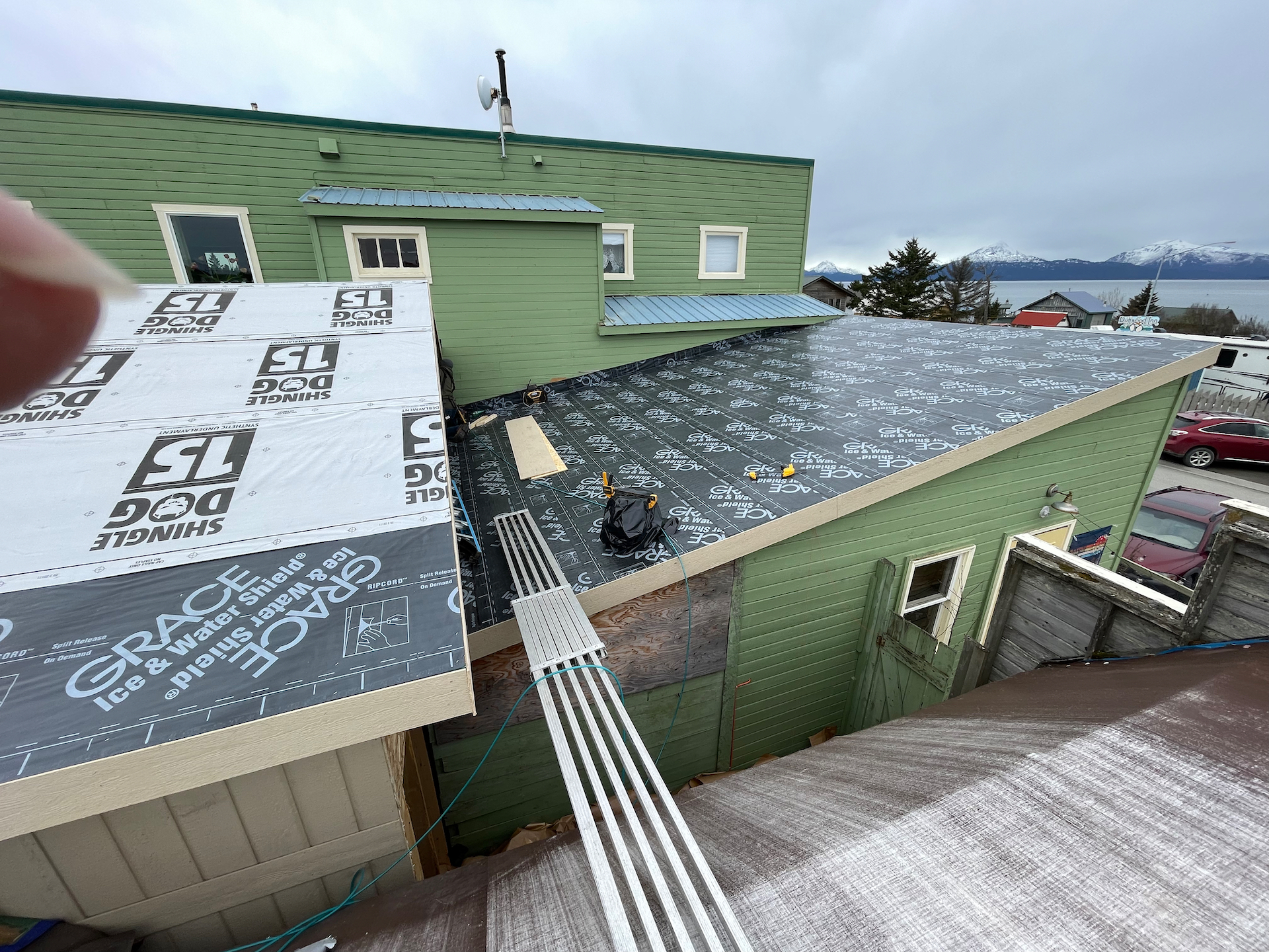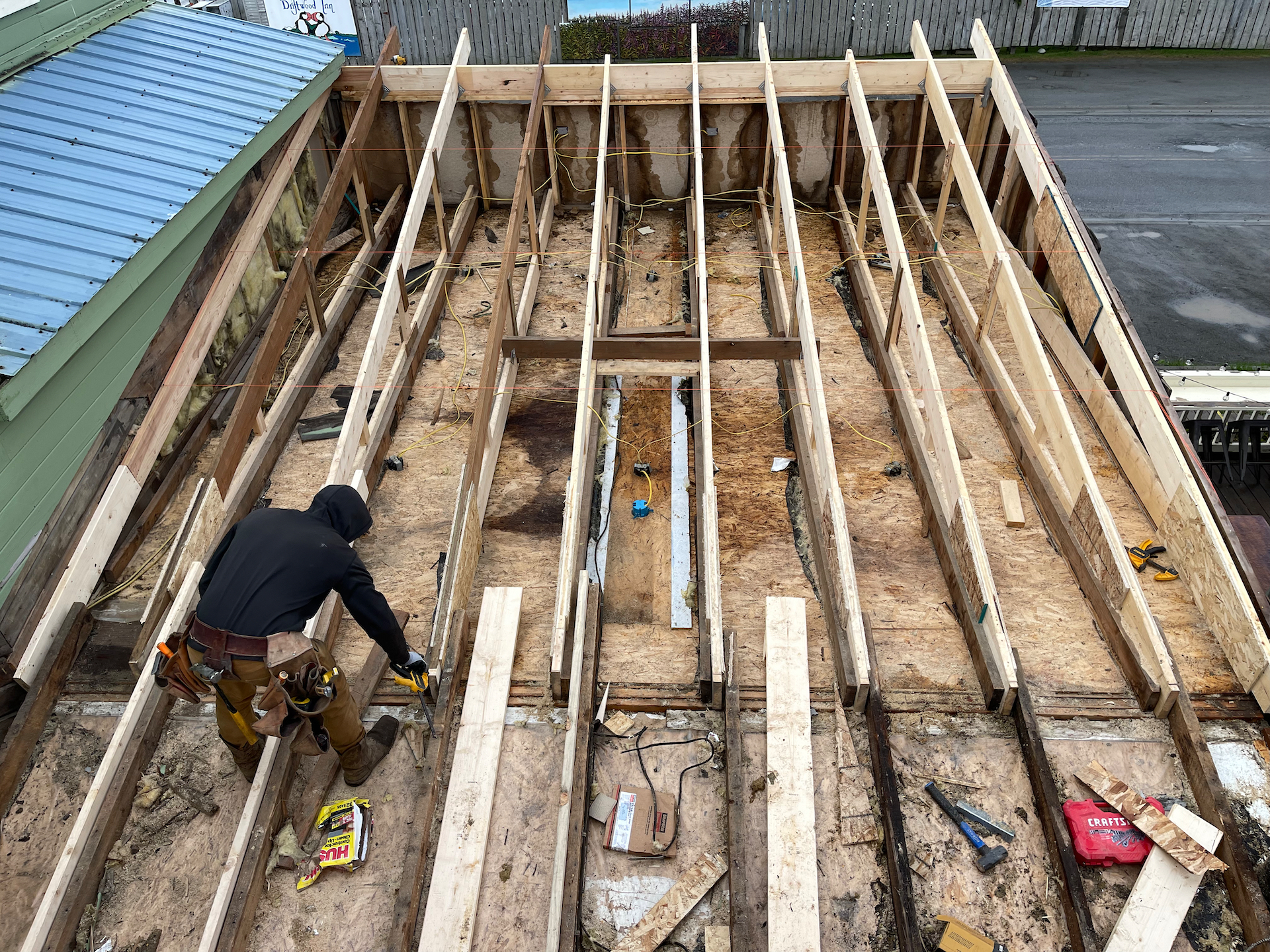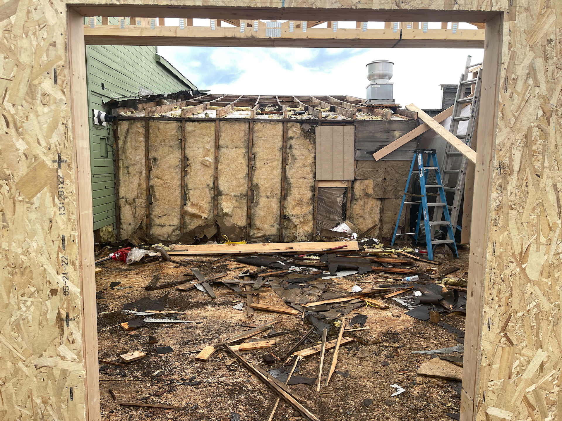 Last week left off with walls in and old roof torn off. The roof wasn’t scheduled to be replaced but, as we suspected, when we got into it the old roof had to go.