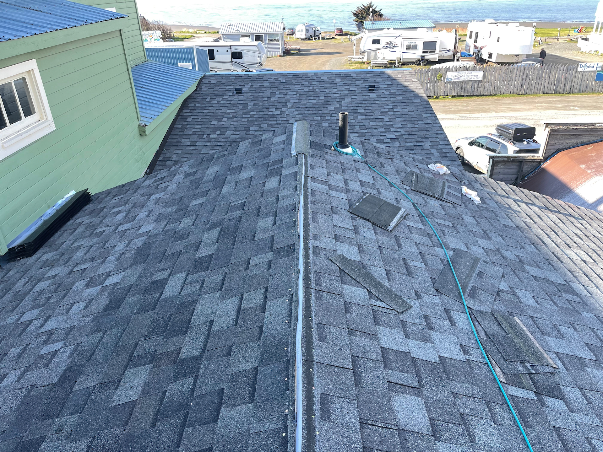 This is before a “cricket” that will go at the bottom to kick the water over to the near side. The drainage will be handled by a gutter/downspout system with heat tape. Not our preferred method but should be fine as long as the heat tape holds up.