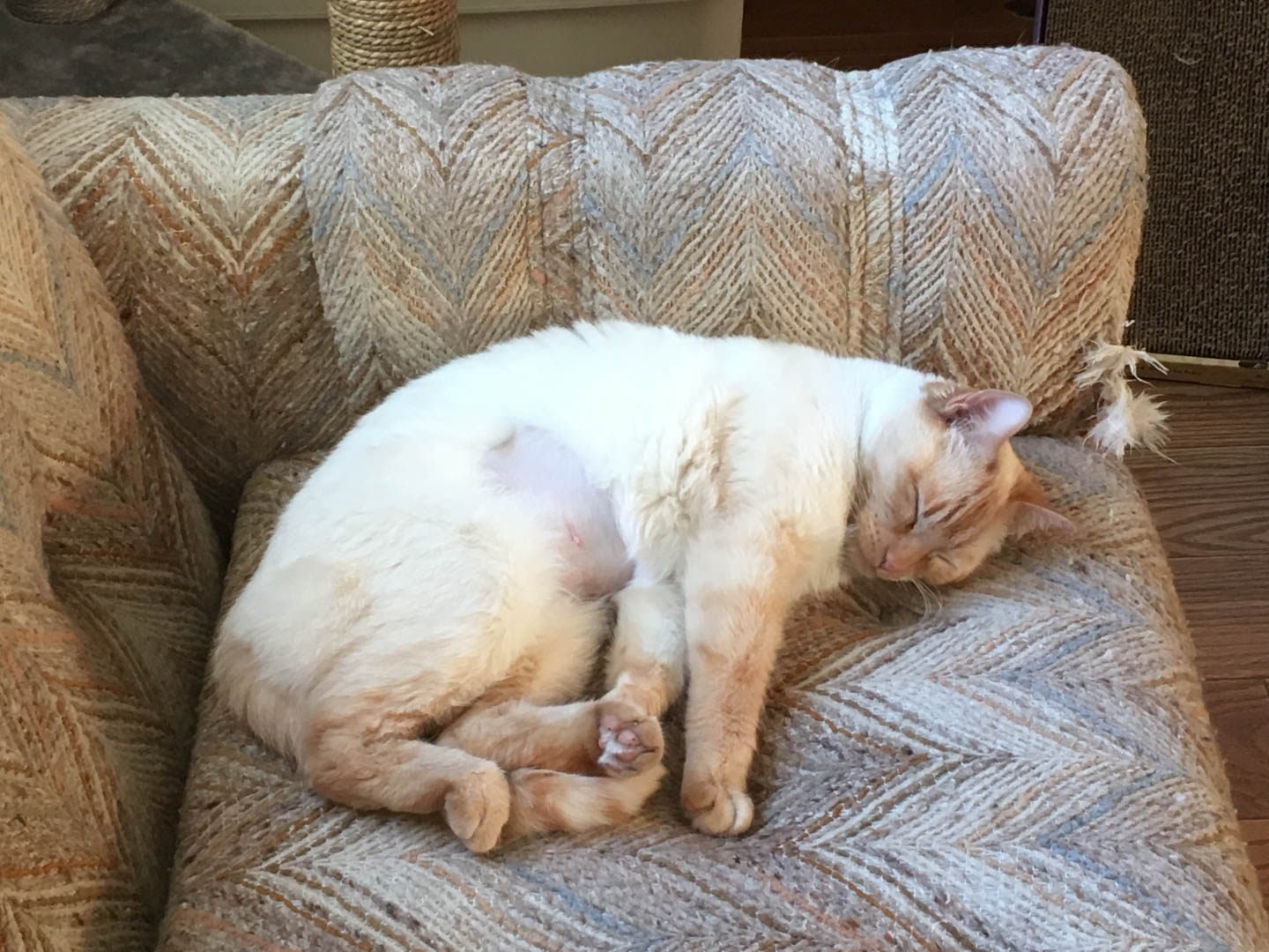 Back home now. Enough excitement for one day and I want to see how the psycho cat is doing. Managing, I see.