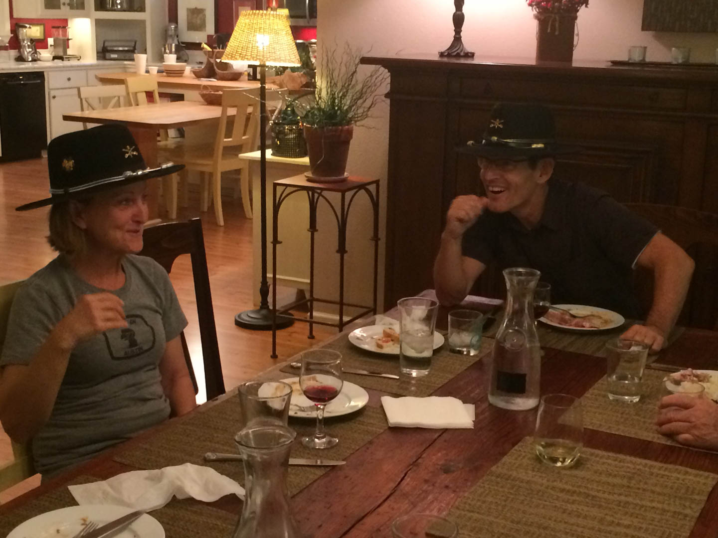 The members of the 1st of the 9th Cav were so thankful for their efforts in behalf of all Vietnam vets that they gifted them with official 1st Cavalry Stetsons.