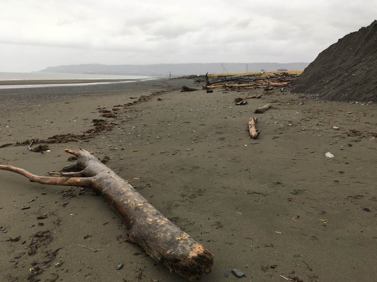 This high tide line is from a later, and lower, high tide. A lot of driftwood has been relocated.