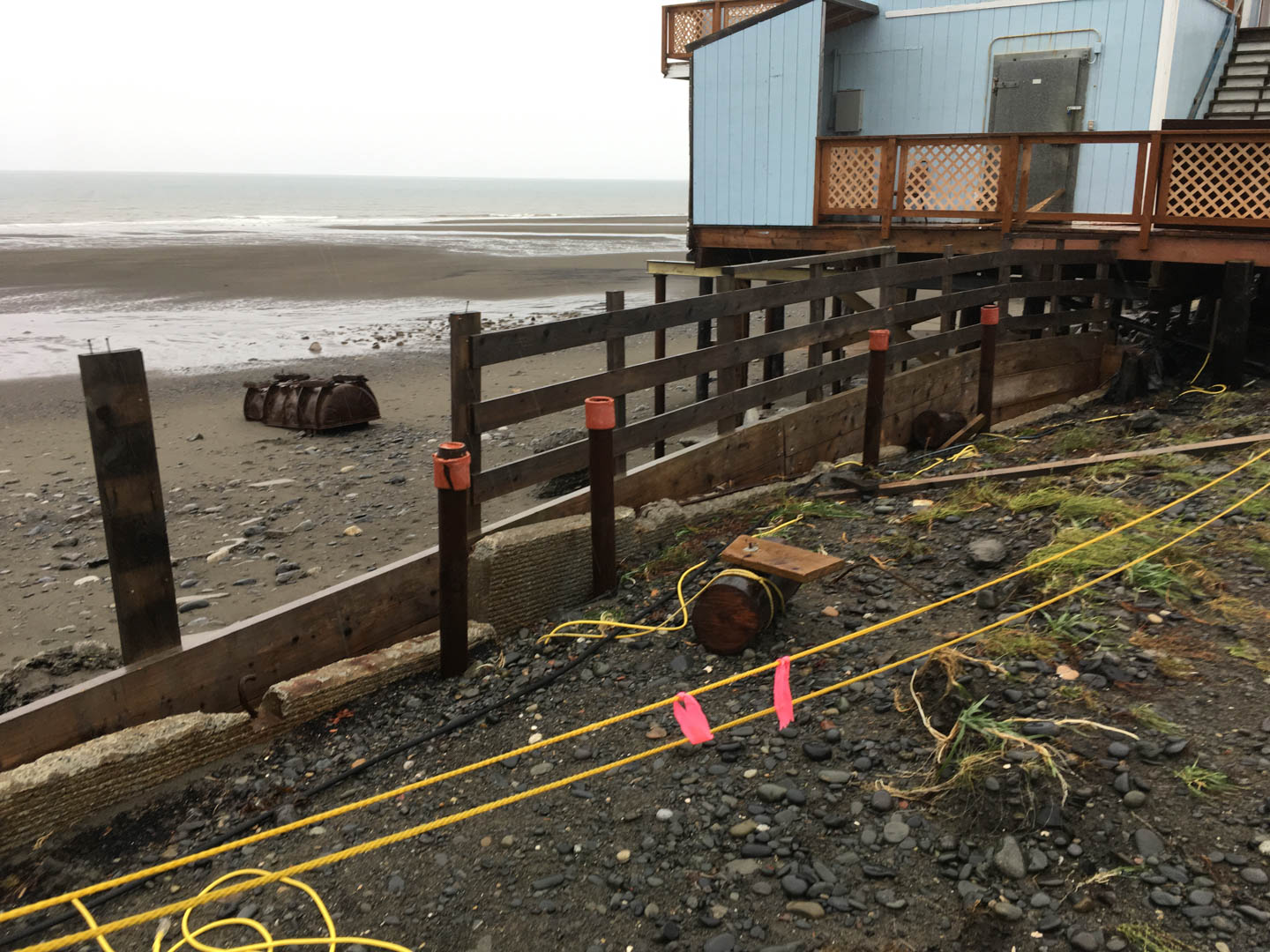 This is the Sports Shed from the beach side. That wood and concrete wall is what the waves were crashing into last post. Those chunks of concrete were once post bases.