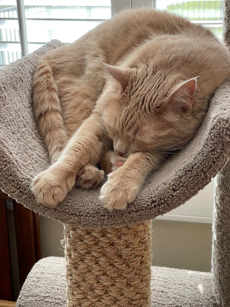 The kittens came as a set, as they were already bonded. Here’s a link to a video that shows one of their favorite pastimes (it will open youtube in another tab): Goose & Kai