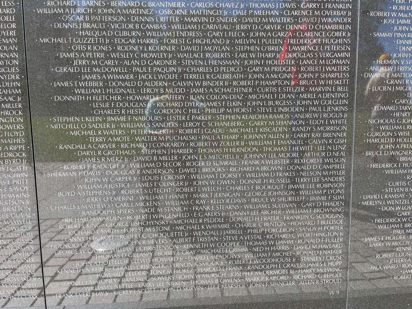 Their names are about shoulder height in my reflection.
