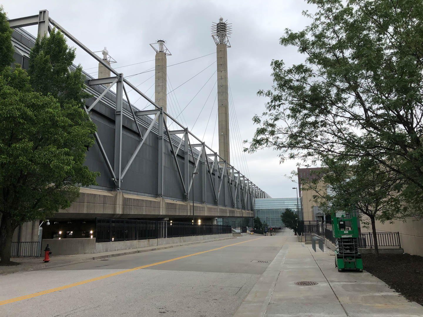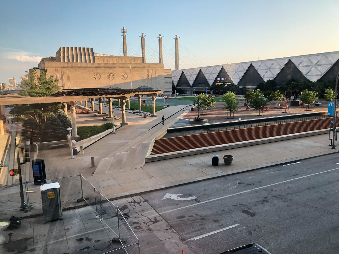 The Convention Center was right across the street from us and it spans a large freeway. The four towers suspend the middle of the building which is over the freeway.