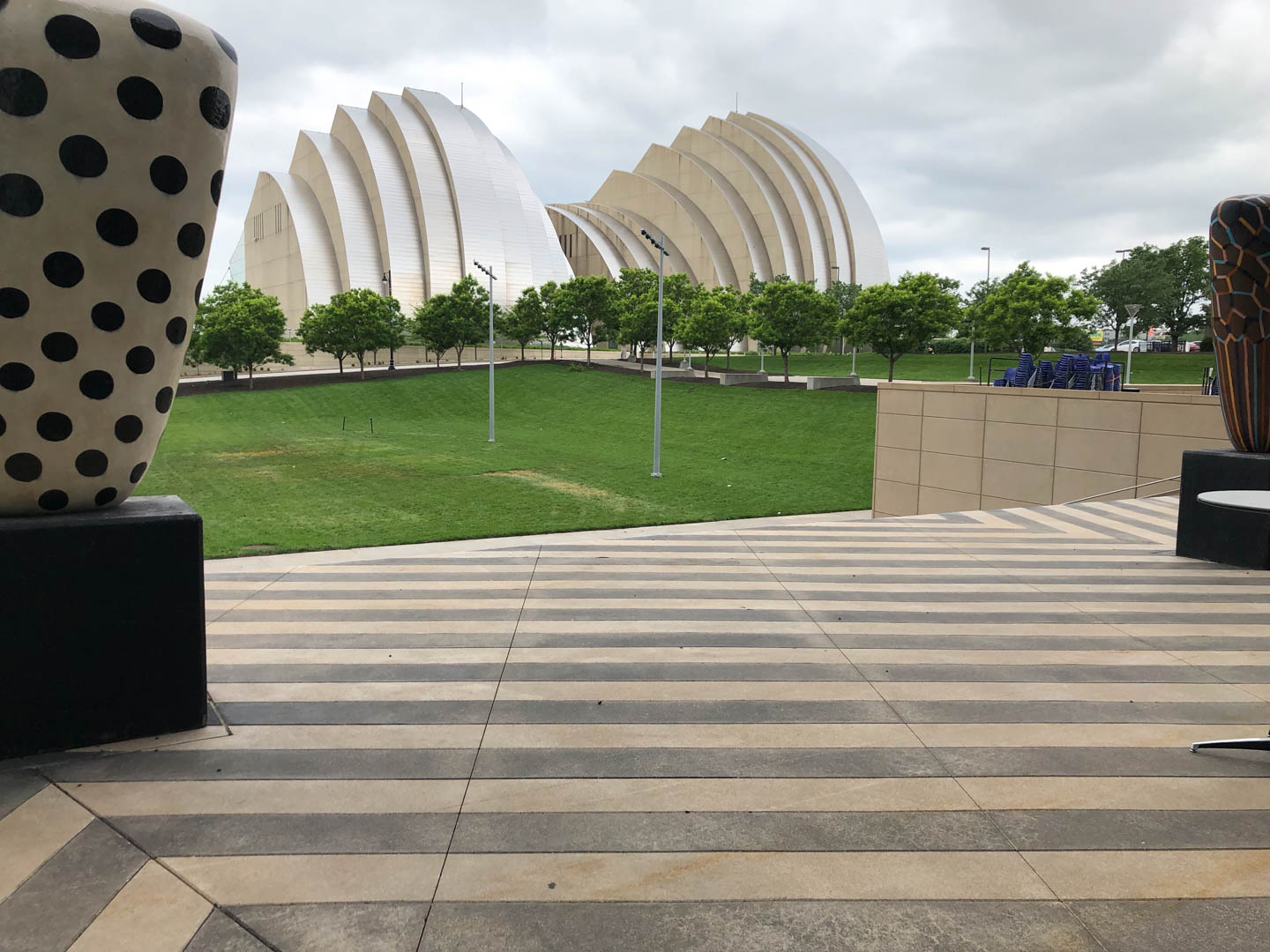 The Convention Center was right across the street from us and it spans a large freeway. The four towers suspend the middle of the building which is over the freeway.